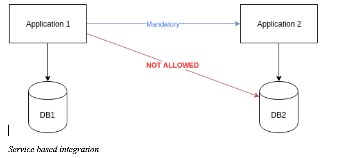So first key decision was that new application will be integrated using service based approach. Especially we proclaimed that each application (read subsystem) is responsible for its own data and none is allowed to mess with it in any way excepts subsystems itself.